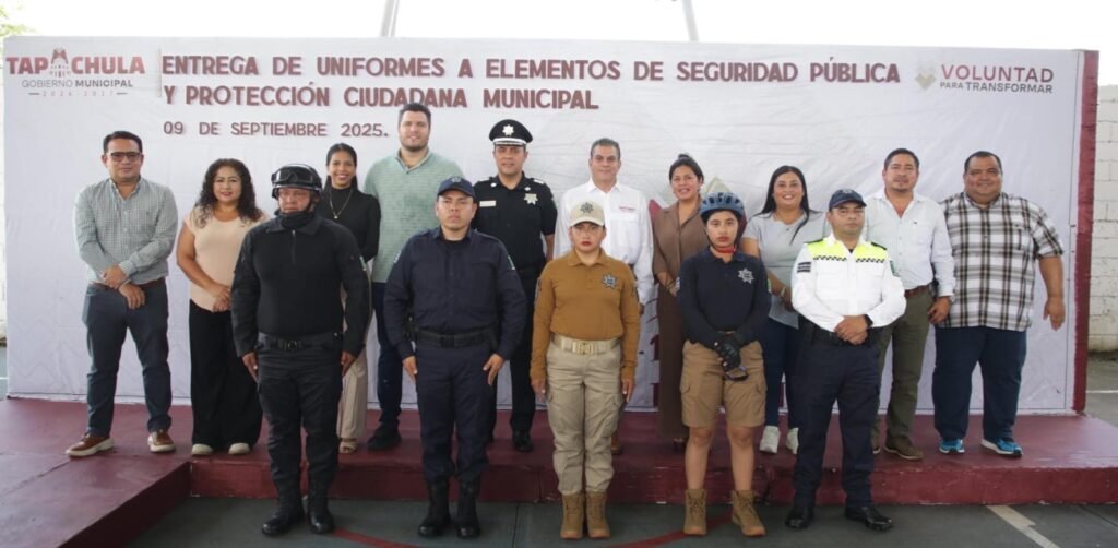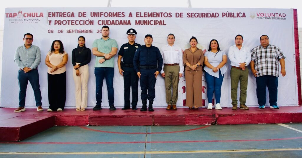 Con el firme propósito de otorgar a los trabajadores el equipo necesario para salvaguardar la integridad, la paz y el bienestar de las familias tapachultecas, el alcalde Yamil Melgar entregó uniformes, prendas de seguridad y protección a elementos de la Secretaría de Seguridad Pública y Protección Ciudadana Municipal (SSPyPCM).