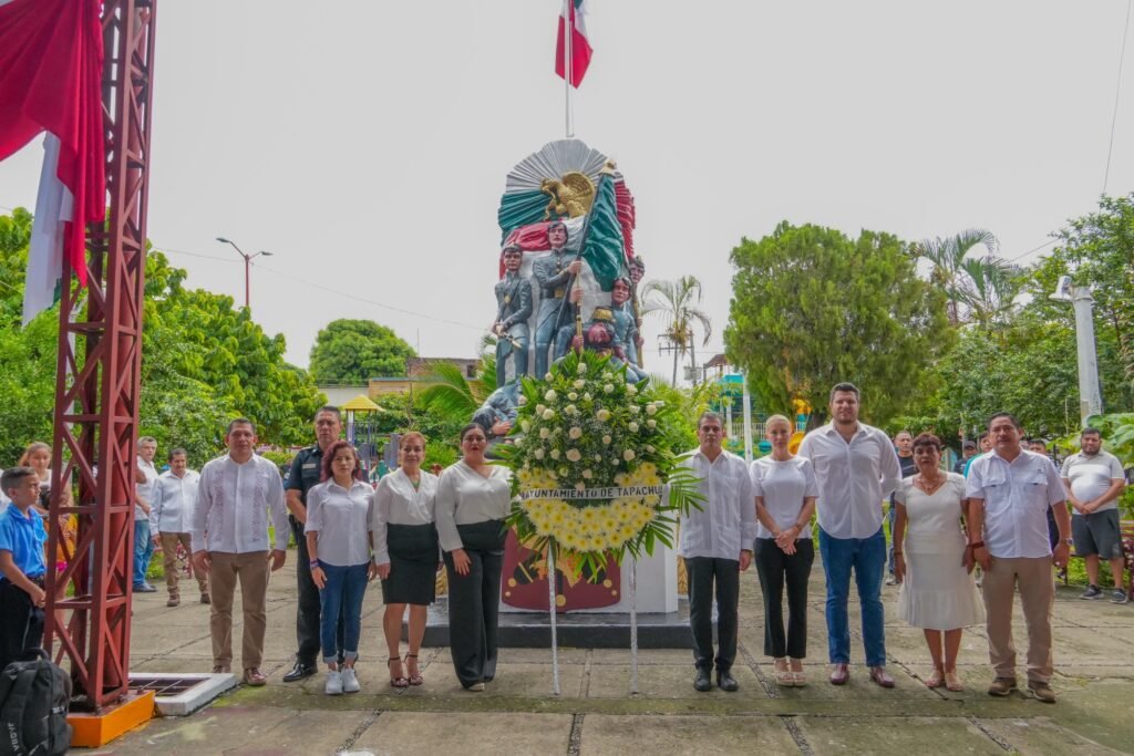 Acompañado por la presidenta honorífica del SDIF Tapachula, Beba Pedrero, el alcalde destacó que esta fecha simboliza la resistencia heroica del pueblo mexicano, recordando que en la defensa de la patria entregaron su vida el subteniente Juan de la Barrera y los cadetes Agustín Melgar, Francisco Márquez, Fernando Montes de Oca, Vicente Suárez y Juan Escutia, quienes enfrentaron con valentía a los invasores.