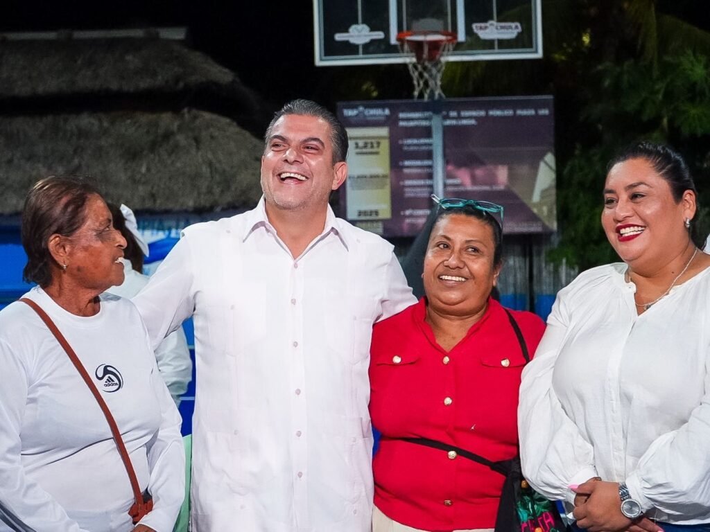 Al inaugurar la rehabilitación de la Plaza Las Palapitas, ubicada en la comunidad de Playa Linda, el alcalde Yamil Melgar Bravo afirmó que su gobierno lleva justicia social al rescatar espacios deportivos y comunitarios, como este punto emblemático que ahora ofrece mejores condiciones para la convivencia familiar, la práctica del deporte y la recreación de la población local y de los visitantes.