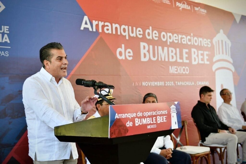 Señaló que Tapachula registra inversiones superiores a los 400 millones de pesos y con esta nueva inversión de 100 millones de dólares por parte de la empresa Bumble Bee, «estaremos cerrando el primer año del gobierno de nuestro Gobernador Eduardo Ramírez Aguilar, con inversiones que superan los 2,200 millones de pesos tan solo en
