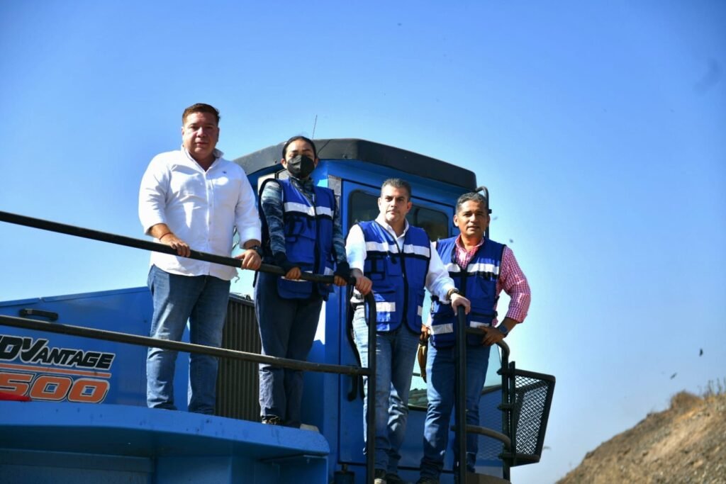 Asimismo, se dio a conocer el uso de maquinaria especializada para la compactación organizada de los residuos, destacando la operación de un compactador tipo “pata de cabra”, con una capacidad de compactación de 35 toneladas por centímetro cuadrado, lo que permite garantizar una estabilidad de hasta 800 kilogramos por metro cúbico de residuos confinados.